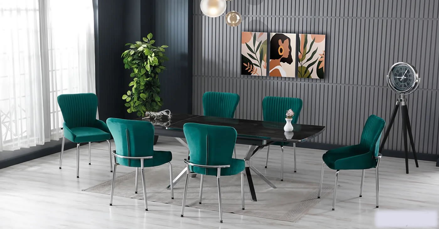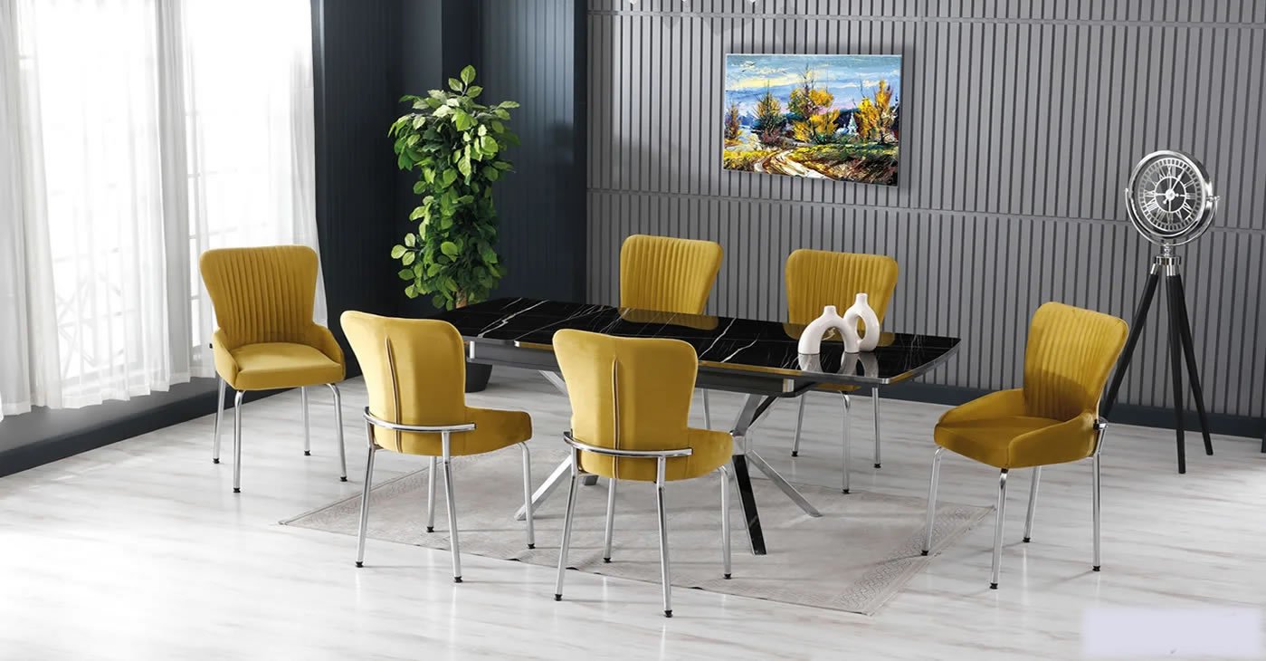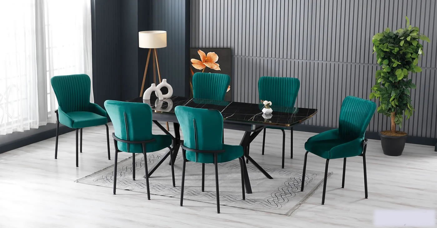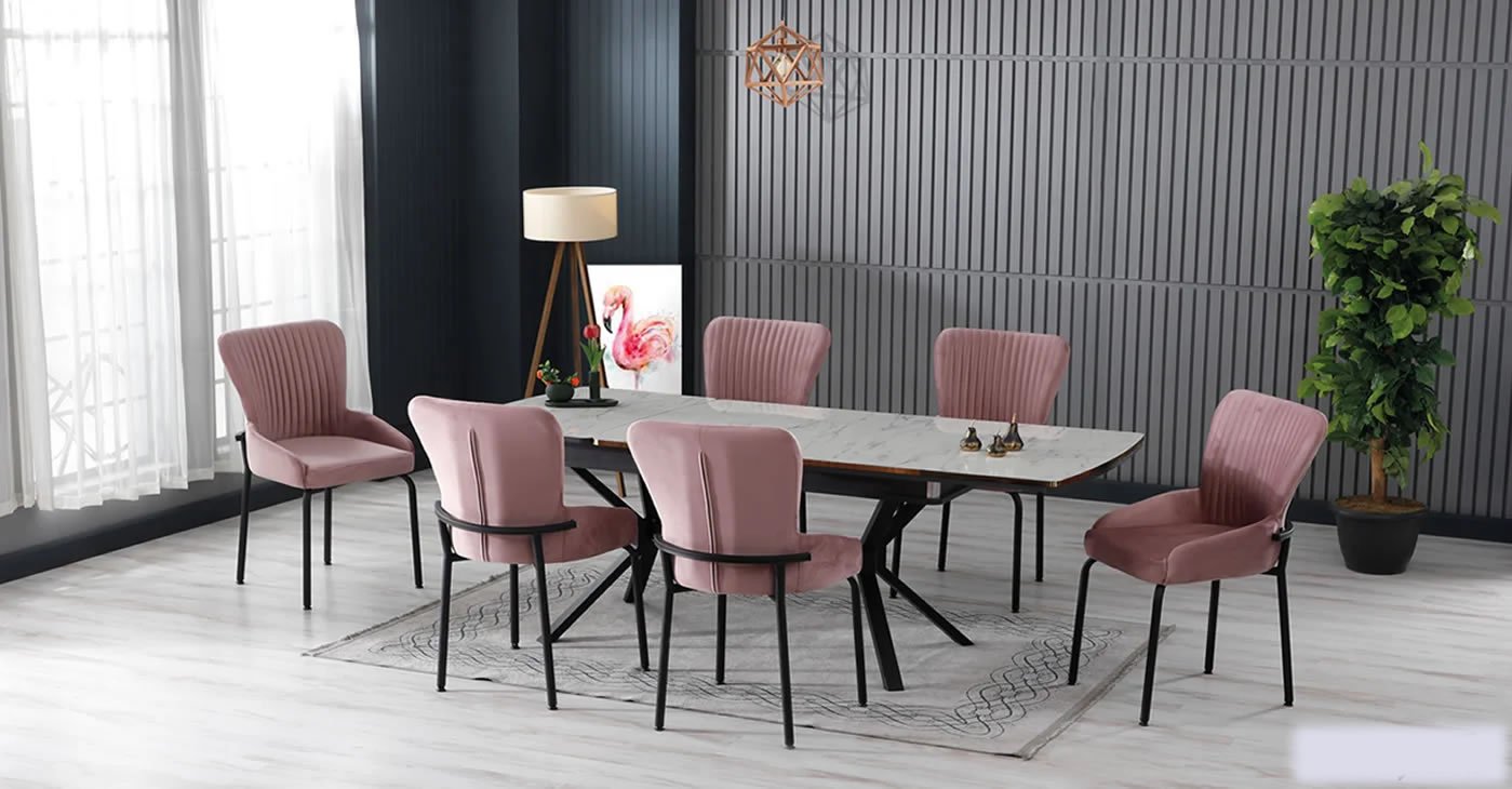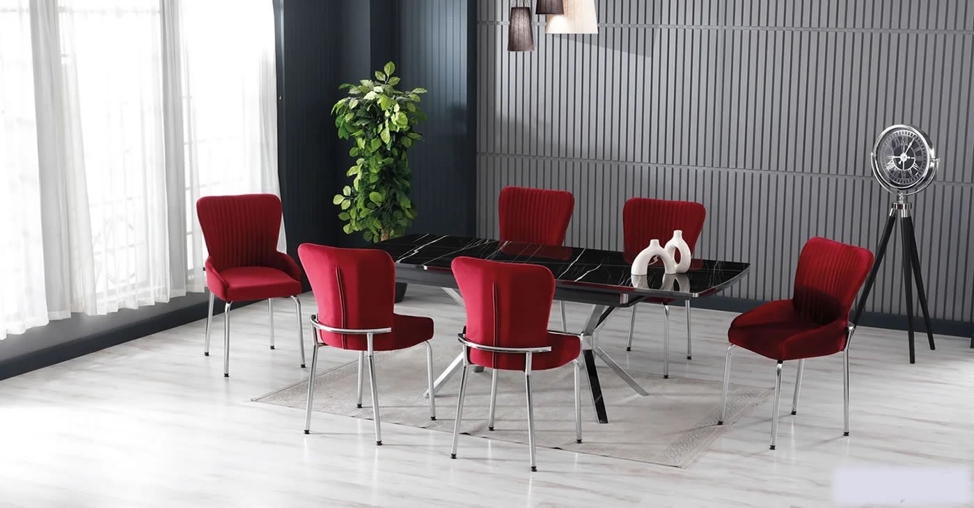 Ürünümüz: MDF Glossmax Tabla Masa, 6 Sandalye dir. Ürün Boyutu: Kapalı 80x130 CM - Açık 175x80 CM | Ürün malzeme detayları resimlerde mevcuttur. Silinebilir babyface kumaş, masa ve sandalye tüm renk seçenekleri mevcuttur. Sandalye ek istenirse adet fiyatı: 4.850 TL dir.